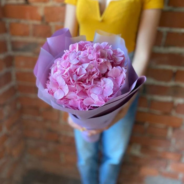 Пышная и яркая шапка нежно-розовой гортензии – идеальный подарок и ключик к самому неприступному сердцу, ведь этот цветок, так напоминает нам о теплых и солнечных летних деньках.