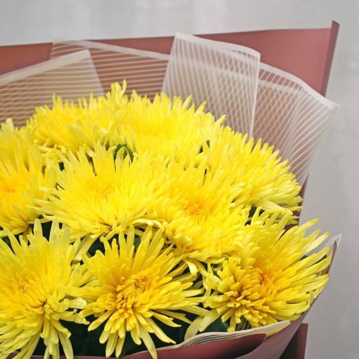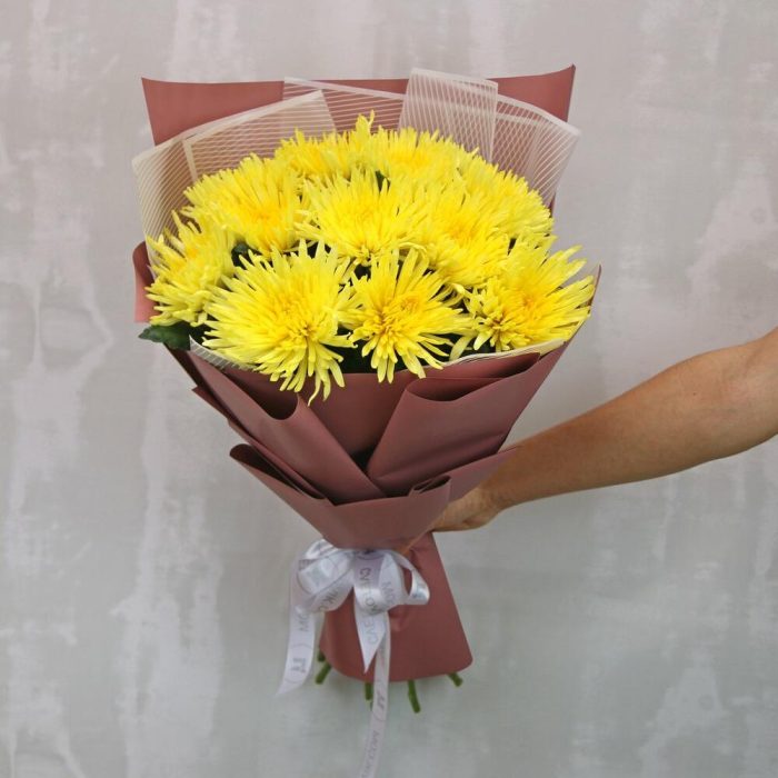 Букет из 11 желтых хризантем Анастасия в стильной упаковке