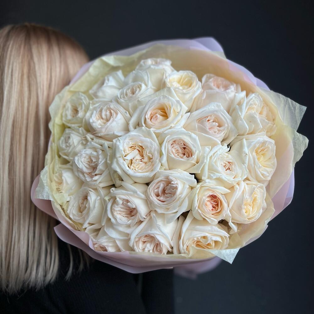 Лента атласная – 1 шт.Упаковка дизайнерская – 2 шт.роза вайт о хара( ароматная) – 25 шт.